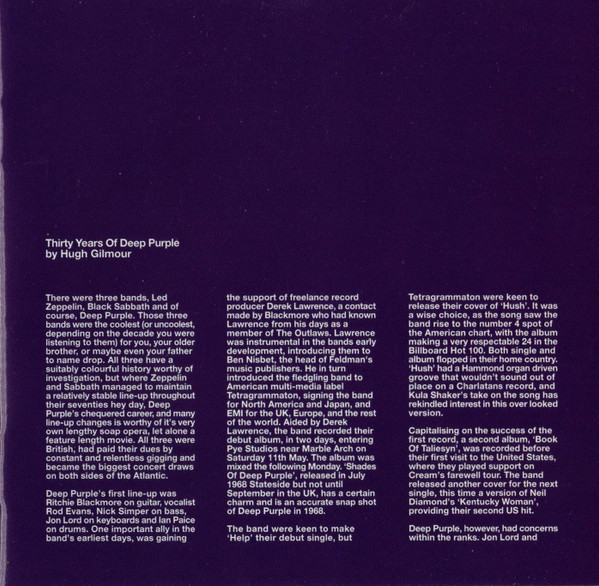 | 1 | Hush (30th Anniversary Remaster) | 4:29 |