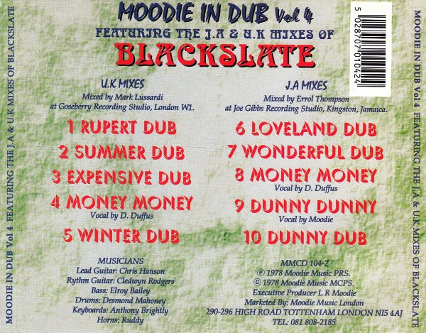 Moodie* ‎– Moodie In Dub Vol 4 – Featuring The J.A & U.K Mixes Of Blackslate
